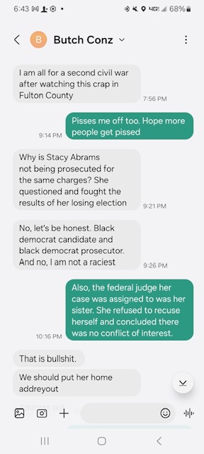 'During his association with Angie Wong @AngieWong Conz has threatened Stan Fitzgerald in writing , Threatended Patrick Collis (Collis Stated so in writing) , used the United States mail to intimidate a senior citizen, called for a Civil War and most recently posted another gun threat. Conz while impersonating Veterans for America First @VFAFWarroom with his unauthorized site challenges a random twitter user to a fight and calls Kash Patel Trump's pick for FBI director untrustworthy.